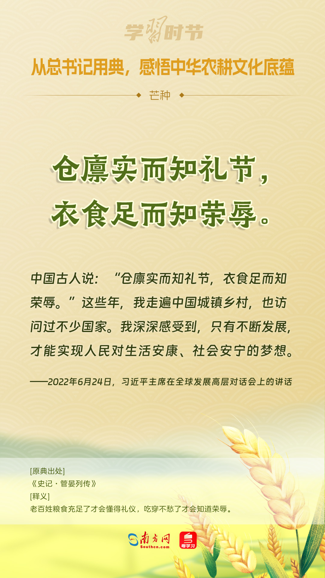 6月5日迎来芒种节气,让我们一起重温习近平总书记引用过的关于农耕的经典名句,共同领略中华优秀传统文化的风采与魅力。