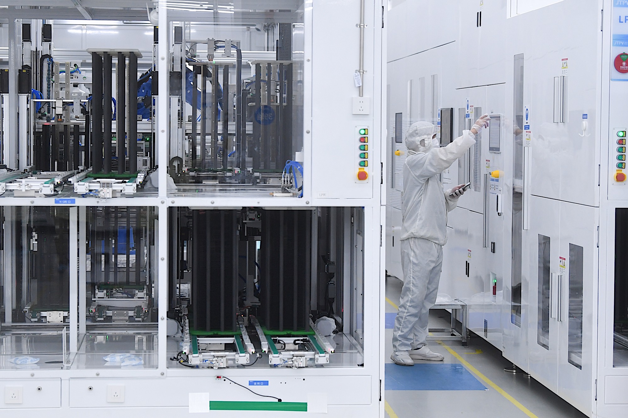 智能物流车往来穿梭,机械臂精准高效作业……一个个硅片经过12道工序“变”成太阳能电池片。这里的24条自动化生产线全时运转,电池片量产良率达98%以上。去年,捷泰科技的N型电池出货量在独立电池片厂商中位居全球第一,市场份额占比为60%左右。