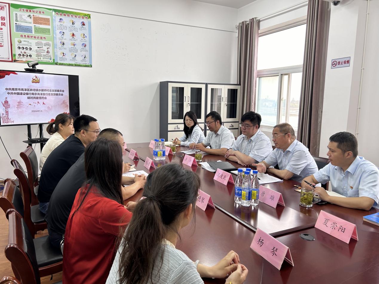 近日,砖墙镇水碧桥村党总支与中国建设银行南京高淳支行党总支成功开展结对共建签约活动。通过签约活动,在共同的目标下凝聚了人心,增强了力量,推动基层党建、乡村振兴等工作再上新台阶,为今后的工作开展奠定了坚实的基础。