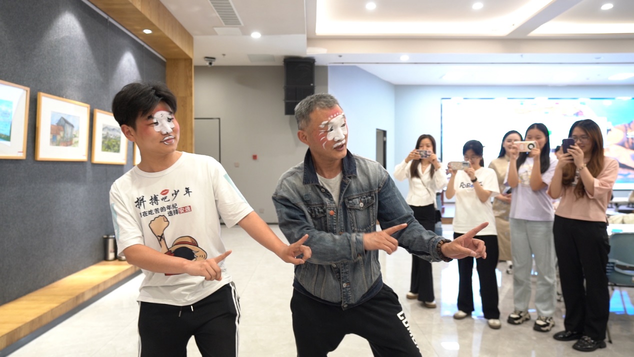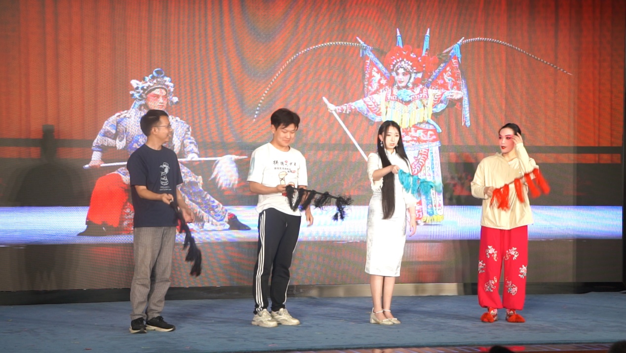 15点30分,在主持人清冽的嗓音中,主演们来到舞台为师生们带来剧前导赏,介绍折子戏内容,并邀请现场学生同台学习戏中的动作。