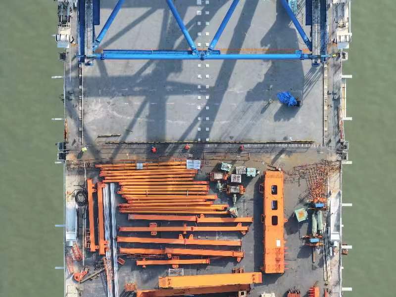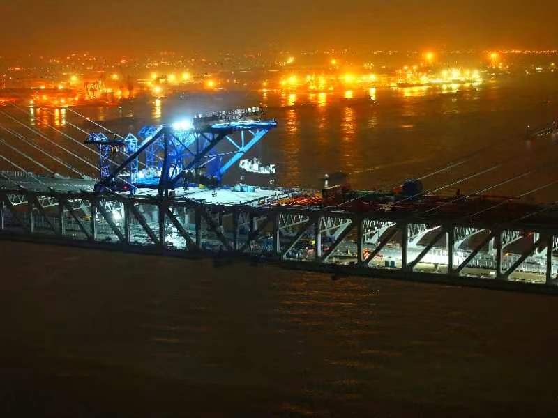 主航道桥合龙施工工序复杂、施工难度大、精度要求高。想要高质量“缝合”,把合龙精度控制在毫米级别,需要练就“绣花”功夫。建设团队利用主梁纵移调整合龙口间距,通过调整索力消除合龙口高差,配合桥面临时荷载移动等方法,使合龙口两侧钢桁梁高程、转角保持一致,最终实现合龙口连接栓孔的高精度对位,最大的偏差仅2毫米。