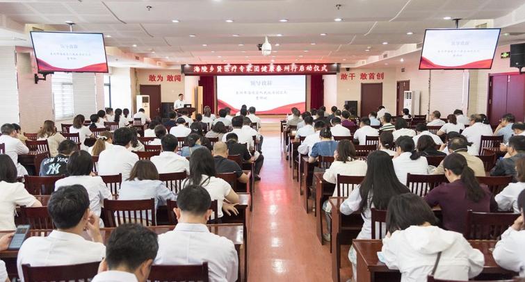 6月8日,“情系桑梓 献爱端午”——海陵乡贤医疗专家团健康泰州行启动仪式在泰州市第四人民医院(简称泰州四院)举办。泰州市卫健委党组书记、主任、市中医药管理局局长全冬明,海陵区政府副区长曹锦明,区政府办副主任徐翔生,区卫健委党组书记、主任谭忠,区卫健委副主任沈小剑,泰州四院党委副书记、院长刘桂荣参加活动。