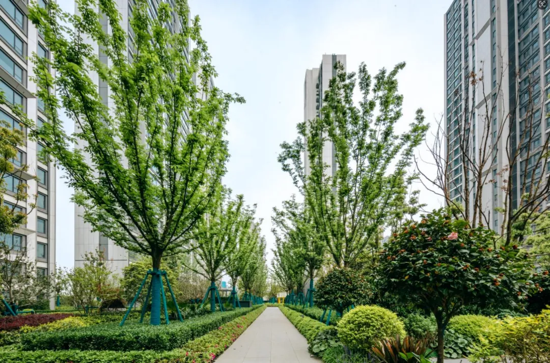 小区内共打造了约15000方超大花园中央景观,在社区园林景观的设计上,由草-花-灌-乔-木组合的五重园林景观,以其垂直、立体和多层次的设计,共同营造出一个丰富多样、层次分明的五重景观环境。
