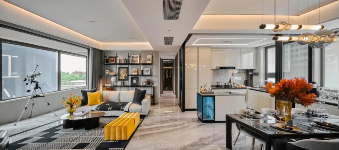 并且还精心配备了全屋智能家居系统,实现智能光线、智能中控、智能安防、智能暖控和智能影音的五大现代科技智能切换,不仅提升了生活的便利性,更让家居生活充满科技感与未来感。