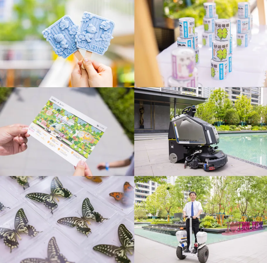 定制文创雪糕、手绘入园指示图、盖章打卡、绿植罐头、收房箱、各种摆件和礼品、拍照区、安防机器人等等,交付细节之处,让人感慨,这哪里是收房,简直就是把自家小区搞成了文旅基地。