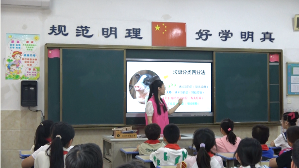 课堂上,中队志愿者讲师生动有趣地介绍了垃圾分类的相关知识,帮助同学们进一步了解垃圾分类的现状,引起对垃圾分类的重视。