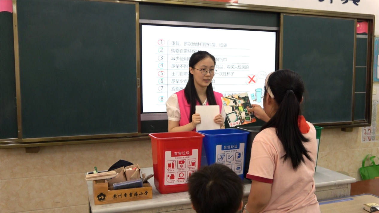 为进一步巩固大家的垃圾分类知识,讲师通过丰富多彩的图片展示四类垃圾回收的实用性和重要性。同学们积极提问,踊跃回答,争做“垃圾分类小卫士”。