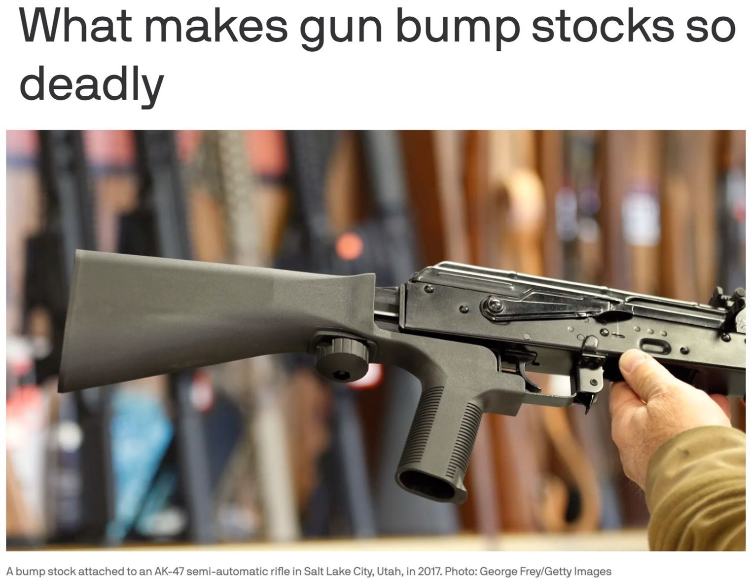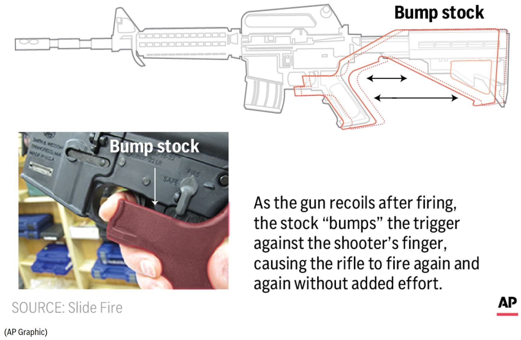 2018年2月,佛罗里达州帕克兰市校园枪击事件后,全美再掀控枪辩论热潮,禁止“撞火枪托”这类设备的呼声越来越高。