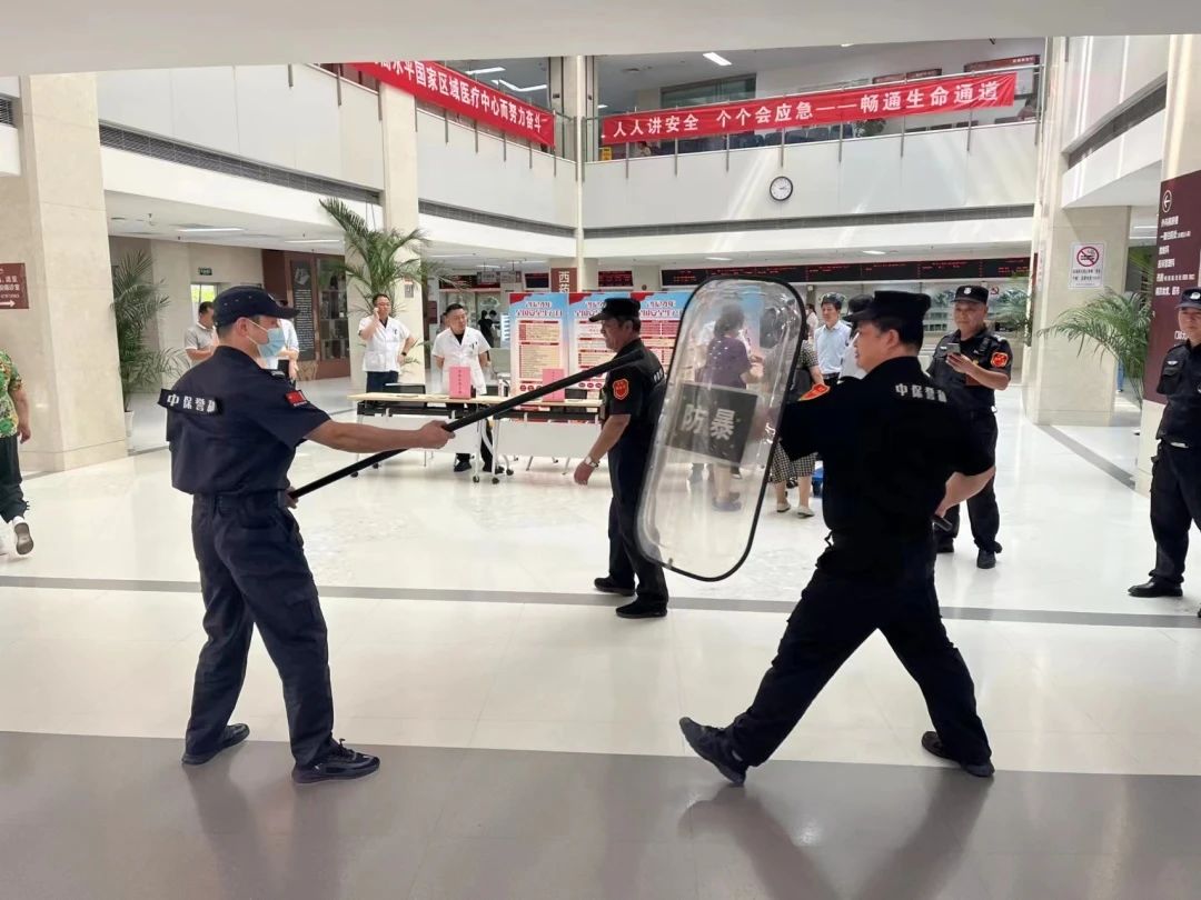 现场还特别设置了反恐防暴展示演练,演练结合医院工作场景特点,模拟突发事件的处置流程。市民们全神贯注地观看,积极参与其中。