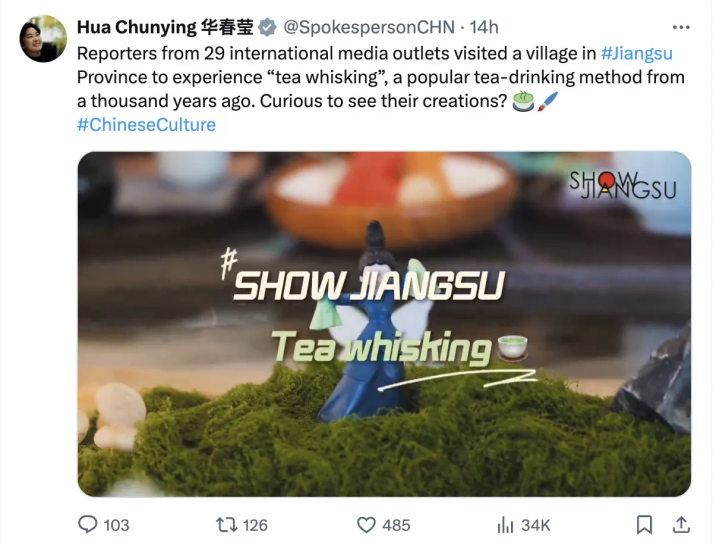近日,外交部副部长华春莹在海外社交媒体平台发布一则动态,向世界推介新时代江苏风貌。华春莹发布的推文中,展现的是“机遇中国 开放江苏”2024“SHOW JIANGSU”摄影采风活动,来自《俄罗斯报》、阿根廷国家通讯社、《阿维斯塔》通讯社等29家国际主流媒体的记者和专业摄影师,在初夏时节探访了南京、常州、无锡、苏州、南通五座“万亿之城”,记录江苏高水平对外开放的全新图景。