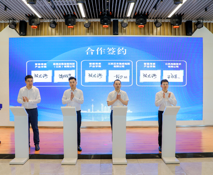 现场,呈像应急装备科技(江苏)有限公司、江苏芯丰集成电路有限公司、江苏冉能技术有限公司等三家企业与盐城智能传感产业学院签约共建智能集成电路与系统、智能应急救援装备等实验室。