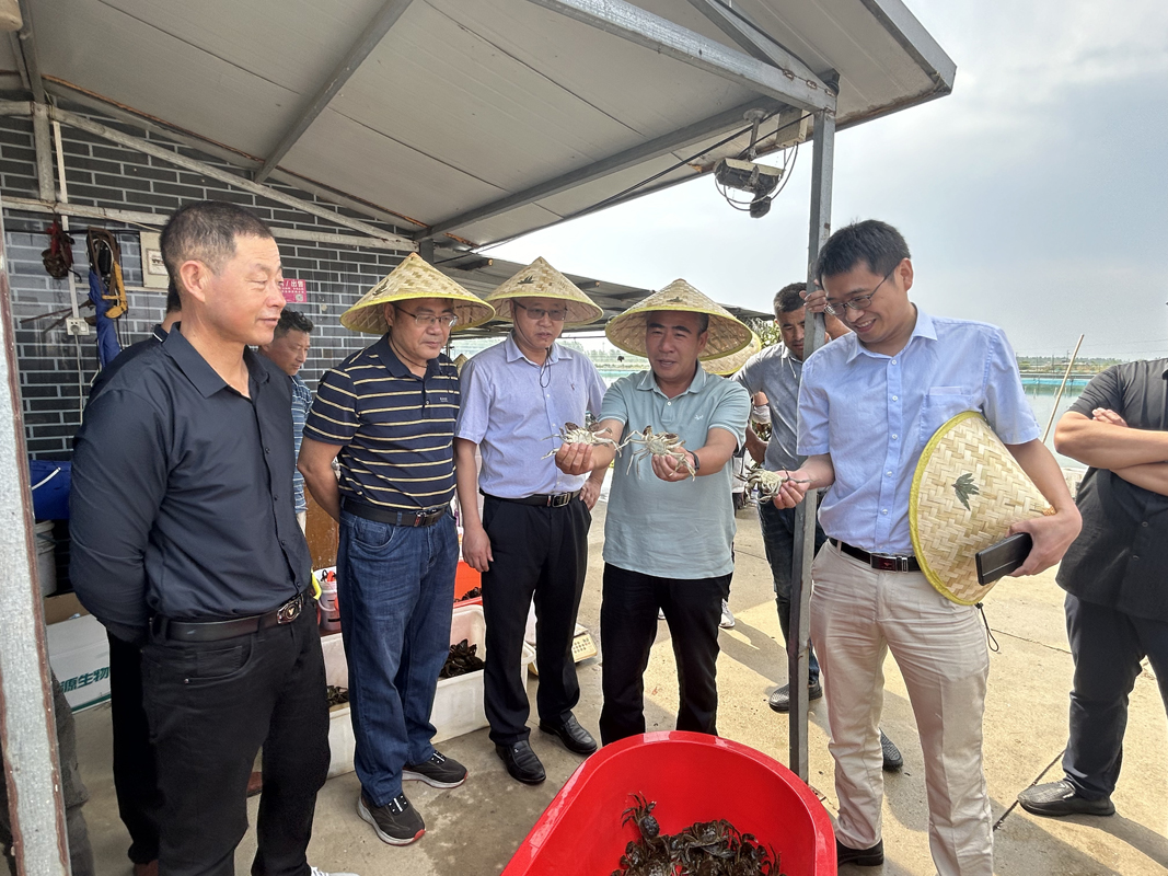 南京农业大学教授刘文斌,省淡水所研究员黄鸿兵,省淡水所研究员、省河蟹产业技术体系岗位专家葛家春,省洪泽湖渔管办副主任孙大伟,江苏海洋大学、江苏农牧学院及行业组织、渔业技术推广部门、企业负责人组成20人的专家组分三组就河蟹苗种、病害防控及投入品使用情况开展调研。