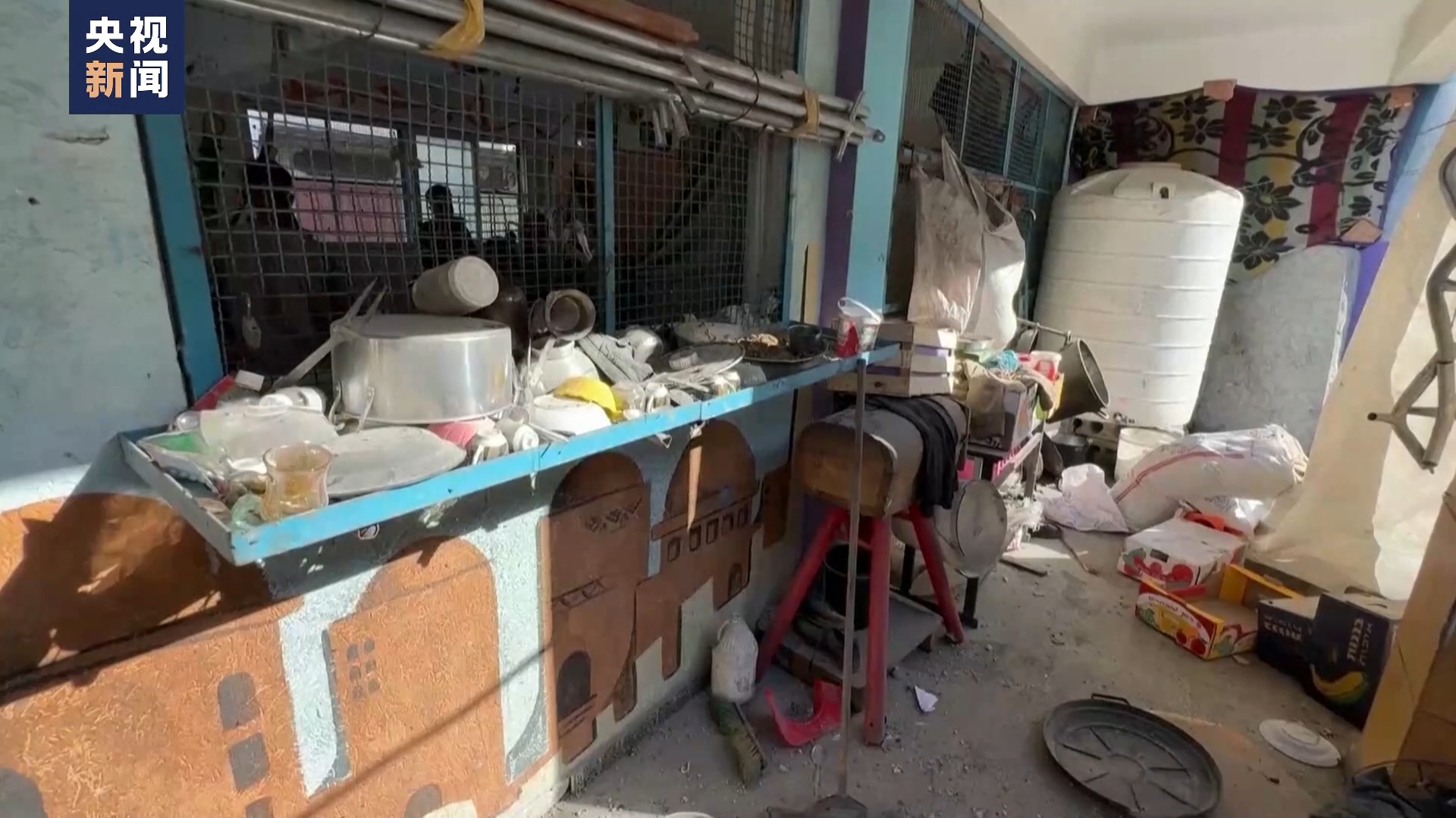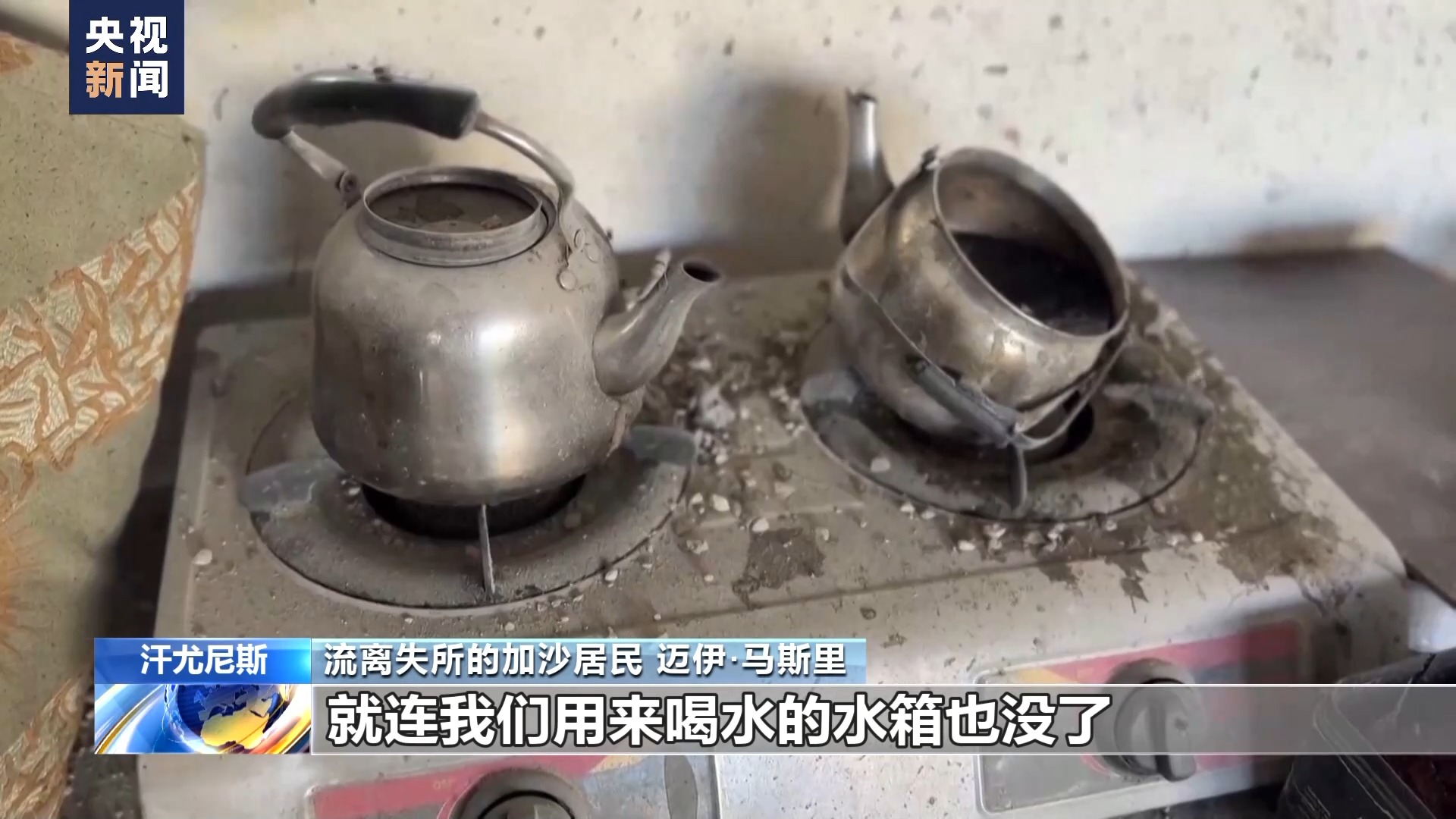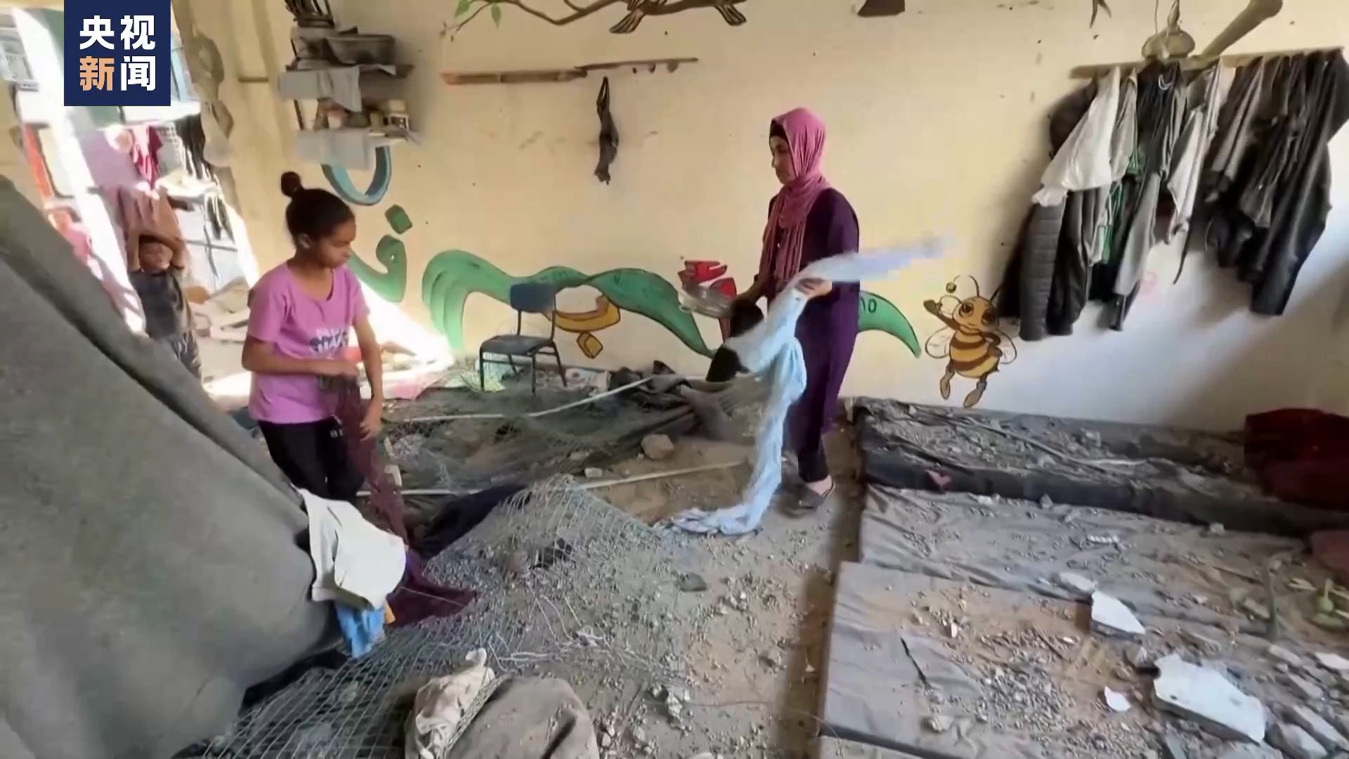 流离失所的加沙居民 迈伊·马斯里:这是我用来放孩子衣服的两个壁橱,看看它们已经成了什么样子,这是用来存放食物和水的,现在所有的东西都被毁了,甚至我们的被褥也被毁了,就连我们用来喝水的水箱也没了。这是孩子的床垫,这里本来条件就很简陋,但现在这个样子,我们还能去哪?我的孩子只能睡在院子里,在露天的院子里过夜,我几乎一晚没合眼。看看这里,这是孩子们之前睡觉的地方,想象一下,如果我们跑得慢一点,孩子们可能已经受伤了。