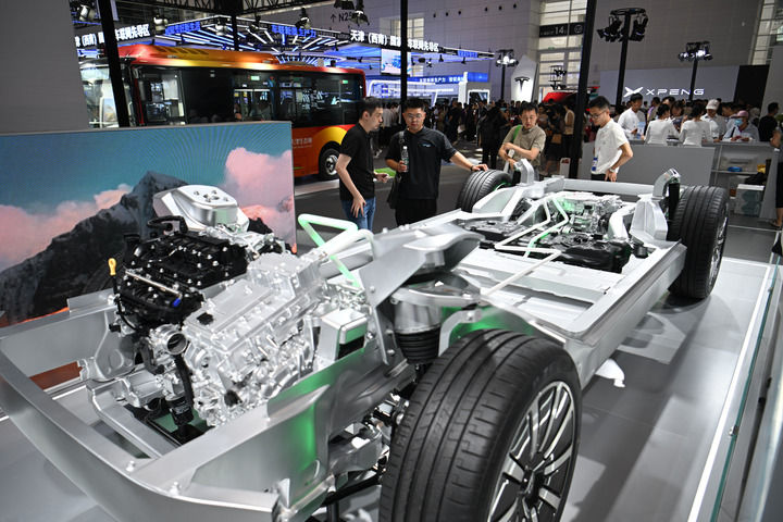 这是在博览会现场拍摄的一款智能网联汽车平台架构(6月20日摄)。新华社记者 孙凡越 摄