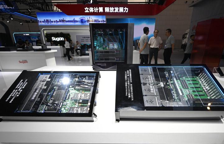 这是6月20日在博览会上拍摄的中科曙光展区的一台人工智能服务器。新华社记者 赵子硕 摄