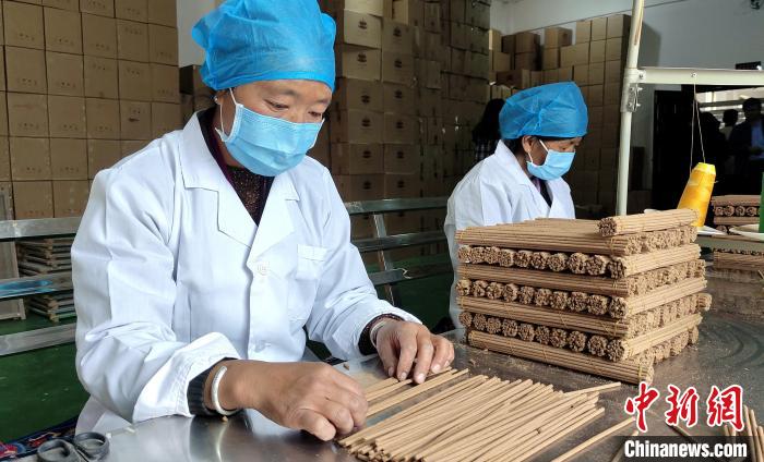 “我们农闲时就会来这里制作藏香。”几位埋头工作的妇女不善言谈,但她们数线香、捆藏香流程十分娴熟,她们足不出村实现就业增收。