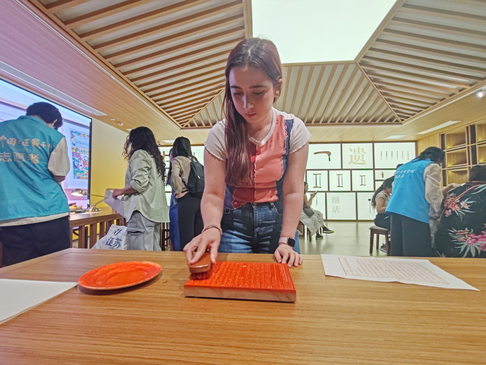 “我很喜欢扬州的非遗文化,特别是雕版印刷,这次来扬州能体验到这种古老的印刷技术,很有意思。”来自法国的网红大V戴明欣开心地说。