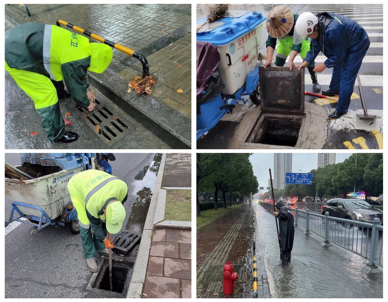 为保障雨天道路的安全洁净畅通,郭巷街道环卫所环卫工人冒雨开展作业。对辖区各道路进行日常清扫保洁工作,对低洼路段的积水、淤泥进行重点清除,清理堵塞窨井及下水口的树叶及垃圾,及时消除、减少路面污水积存。截至目前,郭巷街道环卫所出动31人次,9辆巡逻车,清理0.6吨垃圾,疏通34个窨井,排除隐患8处。