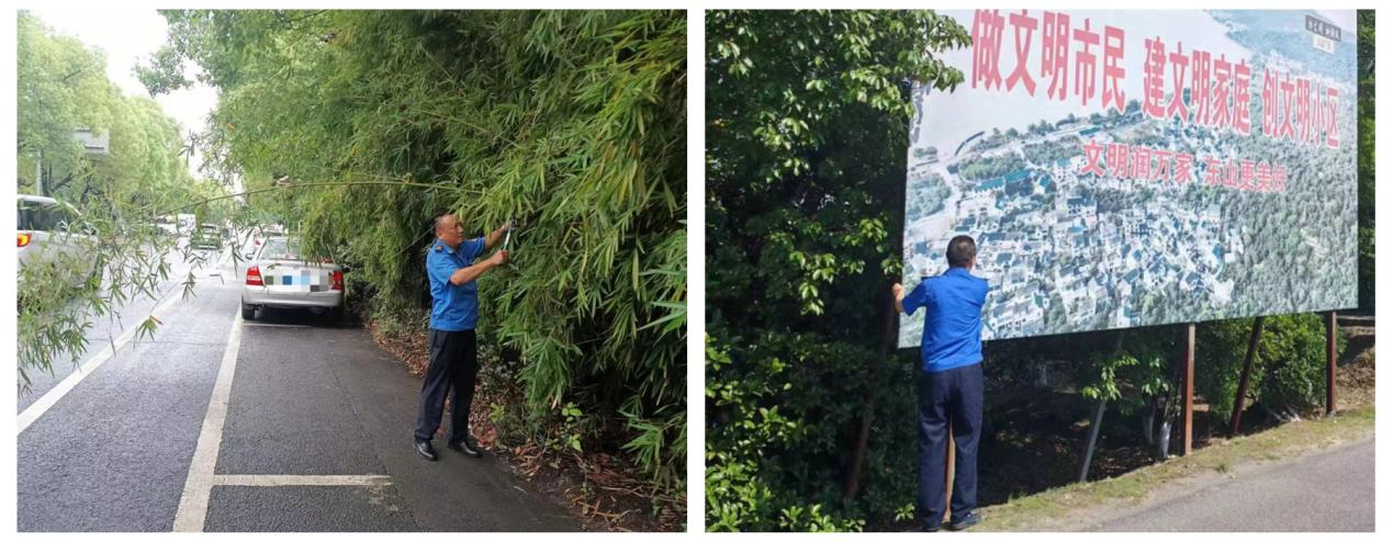 开展各类排险工作。对行道树开展安全隐患排查工作,对断枝、枯枝,倾斜倒伏等问题及时发现并处理。同时,做好交通护栏、标志牌等设施安全隐患排查,及时修复故障设施设备,保证电路畅通。本次防汛,东山镇城管队员排查环境卫生设施、市政道路设施、交通安全设施等近172处,发现并排除隐患问题11处;已处理倾斜、断枝树木21棵。