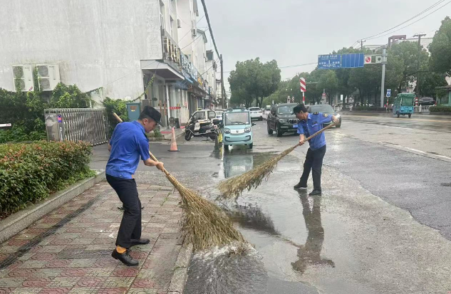 东山镇城管队员与环卫一线作业人员共同出动约115人次,及时疏通路面窨井排水口18处,扫除路面积水46处。