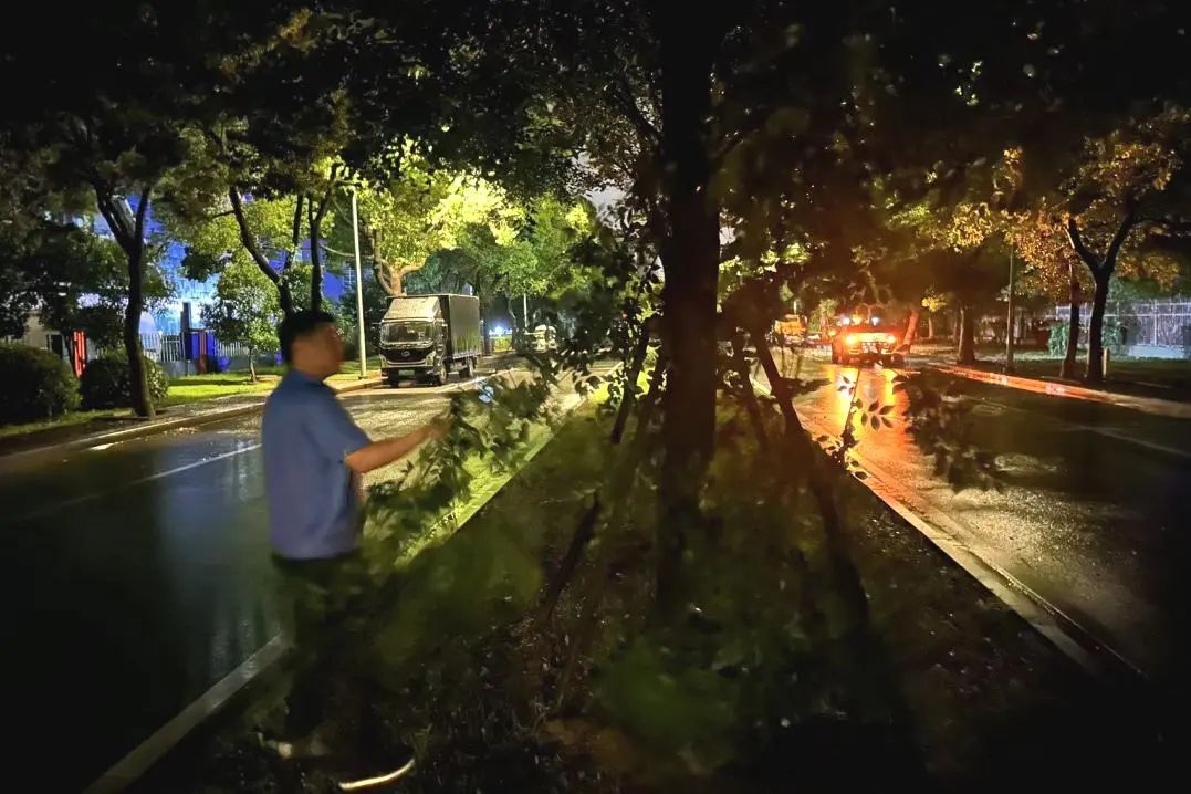 对于倒伏的树木和树枝,郭巷街道城管队员及时进行清理和加固。排查过程中,共清理加固3棵倒伏的树木,防止对交通和行人造成影响。