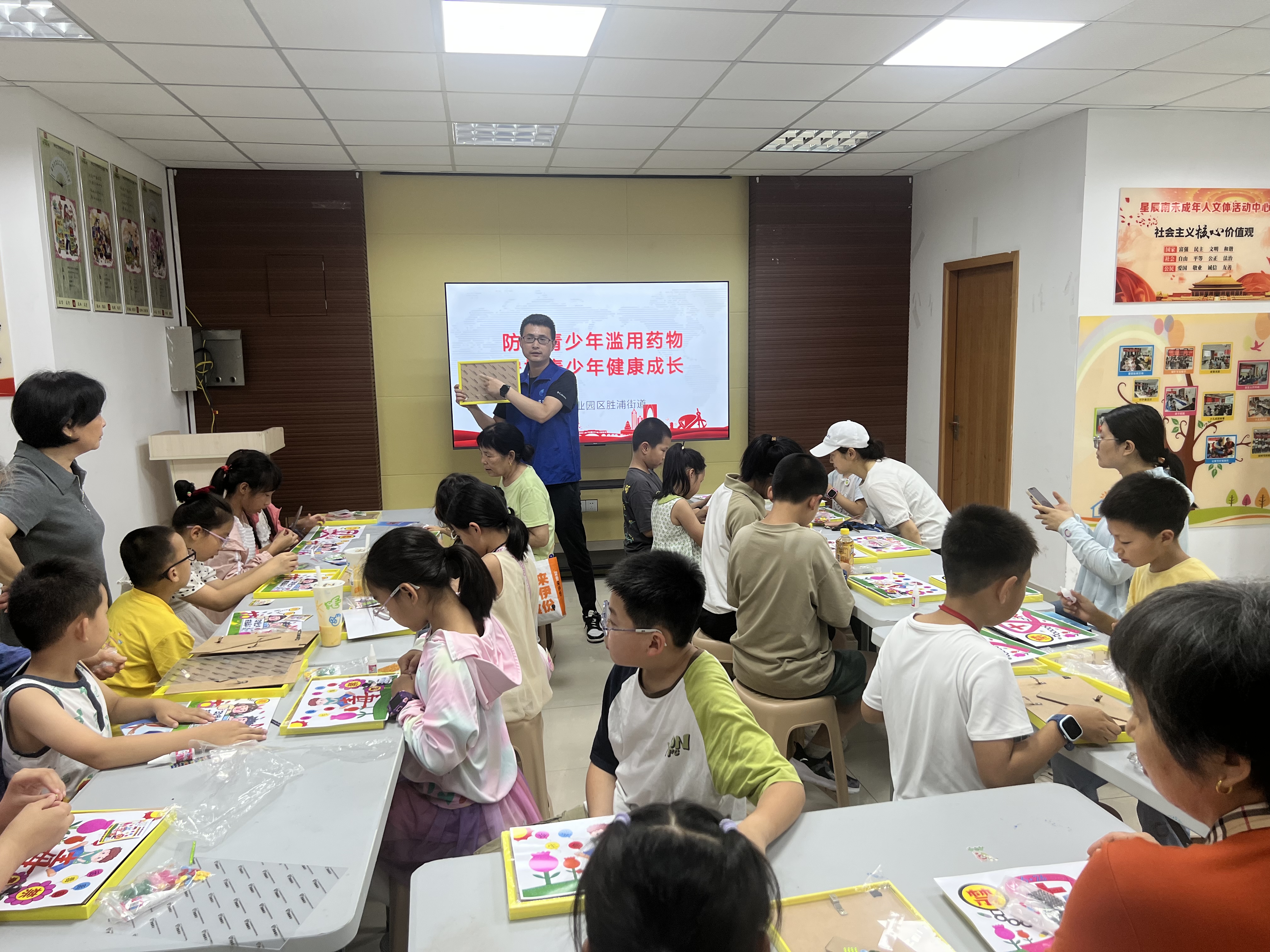当天,社区网格员以“防范青少年滥用药物 守护青少年健康成长”为主题,向孩子们介绍了“什么是麻精药品”、毒品的危害以及青少年如何防止吸毒等知识,告诫学生们要警惕陌生人的诱惑,不要轻易尝试不明来源的食品或饮料。在红管志愿者的带领下,大家用五颜六色的纽扣制作了心目中的禁毒画,现场气氛十分热闹,许多家长表示,这样的活动非常有意义。