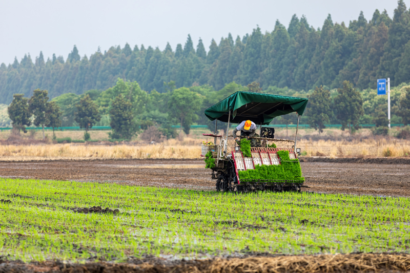 从建筑工人转型成为一名“新农人”,许乃兵的“底气”来自合作社院里停着的几十台“大家伙”。近年来,他陆续购置了拖拉机、插秧机、无人植保机、粮食烘干机等专业农业机械设备,配备了大米真空包装流水线、日产45吨大米加工成套设备,建成了800立方米大米低温恒温库和5000平方米连栋大棚育秧中心。4000多亩农田实现了全程机械化,种植效率大幅提升,有效地保证了合作社水稻育秧的时效。
