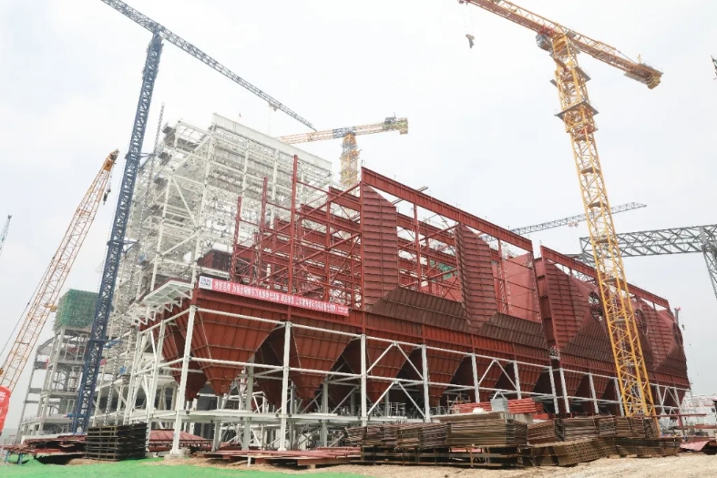 2021年11月,电厂桩基工程开始施工。次年4月,生活、办公临建施工;6月16日,主厂房浇注第一方混凝土;7月3日,#1锅炉钢架开始吊装;10月烟囱施工至100米;12月地下管网建设基本完成。2023年2月中旬,电厂基建复工;5月完成汽轮发电机基础施工;6月上旬完成#1锅炉大板梁吊装;7月完成受热面高压焊口约20000个……时间坐标镌刻着奋斗者足迹,每一个重要节点的顺利完成都离不开苏能人对建设质量的精益求精和孜孜以求。