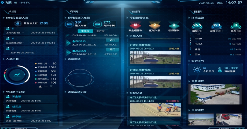 在项目施工现场,刷脸进出、可视化监控、全天候数据采集,150余个视频点位及4处高空瞭望视频点位为各项目施工工段装上了“千里眼”“顺风耳”,视频信号通过无线或有线方式传输到监控中心,实现对不安全行为及时报警。大到电脑、小到手机,安全网格巡检员只需点击设备终端,便可远程对工地实施循环滚动巡查和重点检查,遇到隐患拍照一键上传,下一秒就有检修员立刻“接单”整改,有力保障风险及时处理。