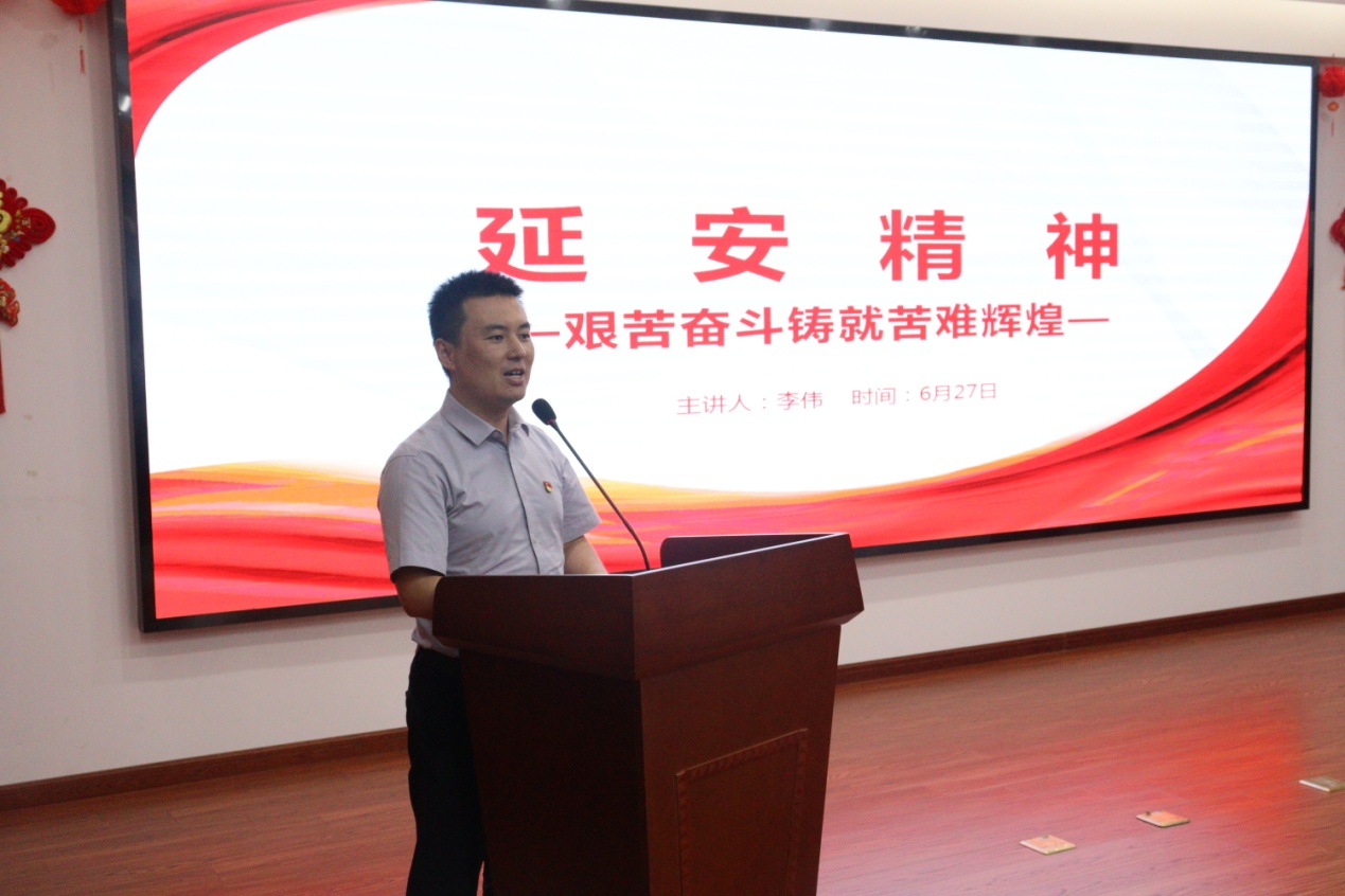 活动开始由中移铁通盐城分公司党支部书记李伟同志为大家讲述红色故事《延安精神——艰苦奋斗铸就苦难辉煌》。李伟以独特的视角、生动的语言、切身的感受,从不同角度、解读诠释了延安精神。他不断强调新时代党员更要厚植家国情怀,传承红色基因,积蓄奋进力量。