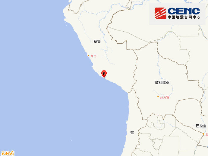 中国地震台网正式测定:6月28日13时36分在秘鲁沿岸近海(南纬15.90度,西经74.35度)发生7.1级地震,震源深度30千米。