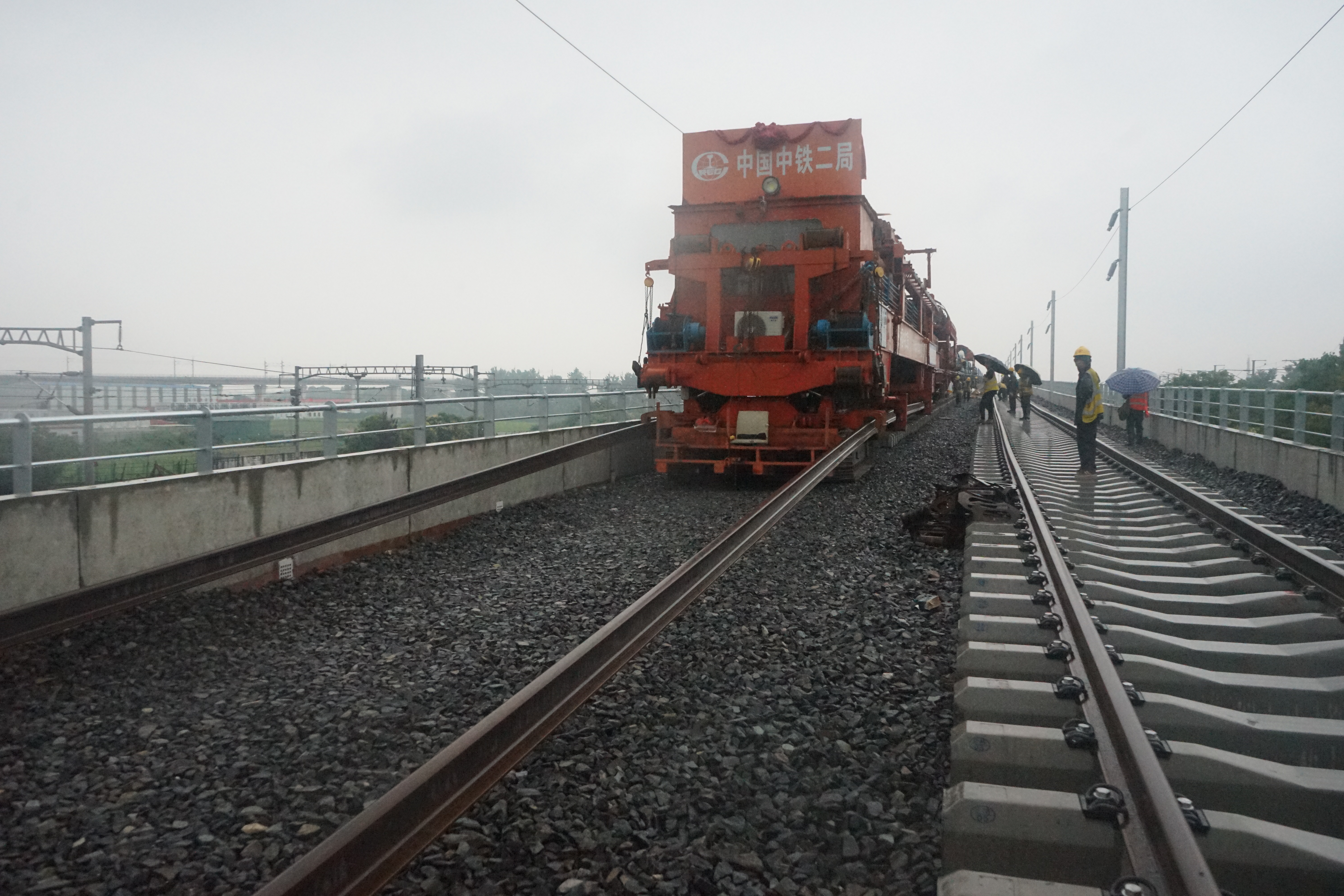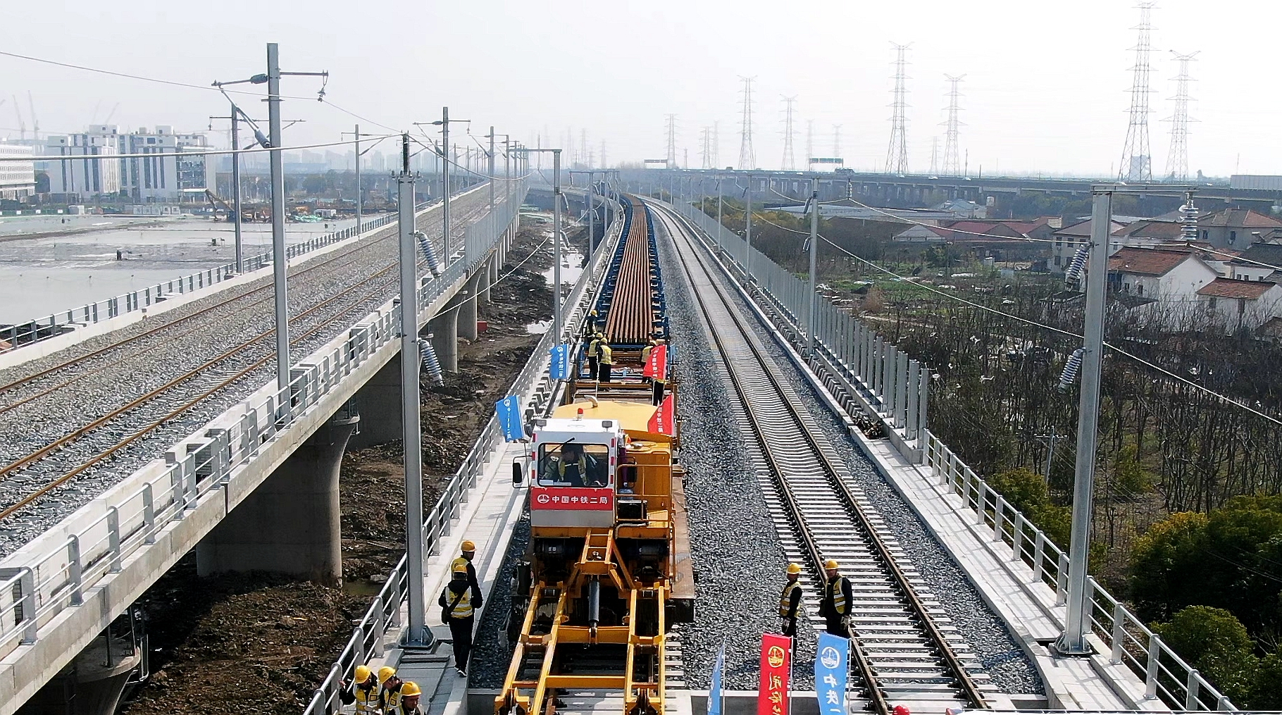 据悉,沪苏湖高铁无砟轨道段采用WZ500E型长轨铺轨机作业,单日最快铺轨12公里。有砟轨道段采用中铁二局自主研发的CYP500长轨铺轨机作业,该铺轨机具备群枕法布枕功能,具有轨枕间距易于调整、布枕精度高、施工质量好的特点,单日最快铺轨2.5公里。沪苏湖高铁预计今年7月底转入静态验收阶段,年底具备开通运营条件。
