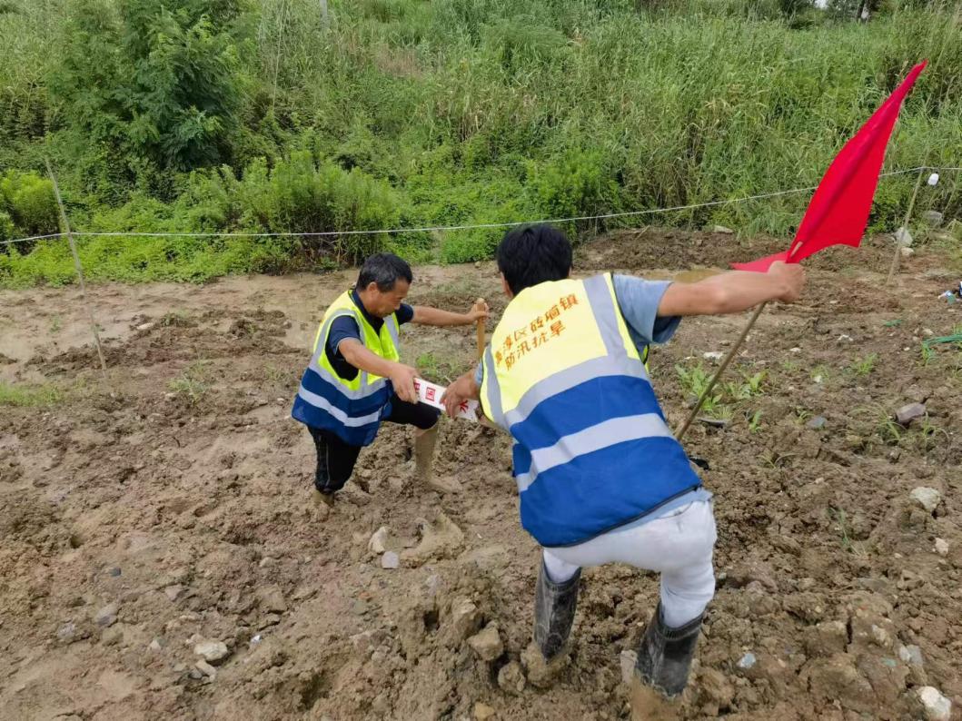 “我是从上午八点开始‘送水牌’巡查的,主要是看堤坝外面的水位和背水坡是否有渗水。”砖墙镇水碧桥村民史超一边查看水位,一边说着。