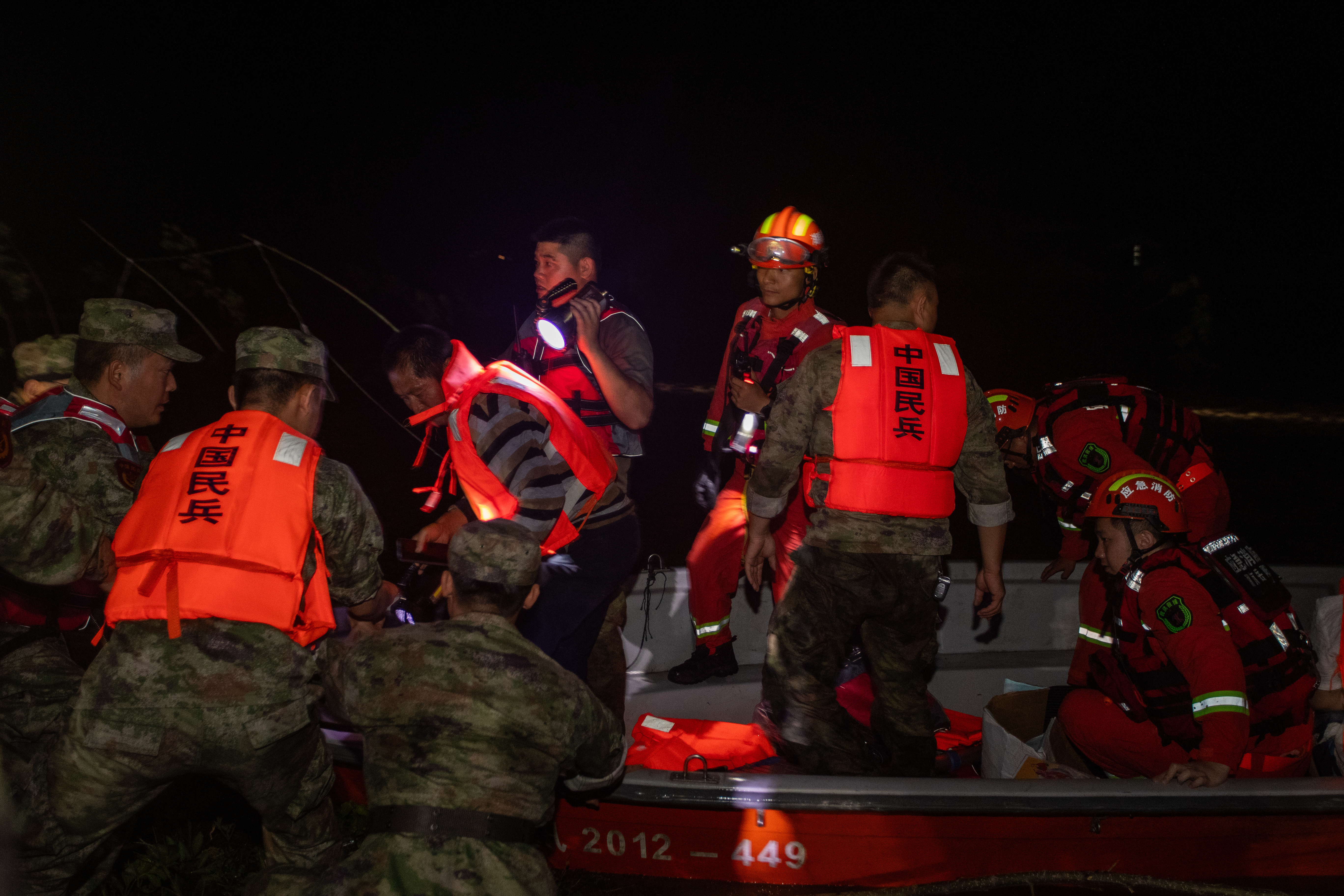 华容武装部的民兵刘毅说:“下午4点得到消息后,我们立刻集合,紧急转移群众。”