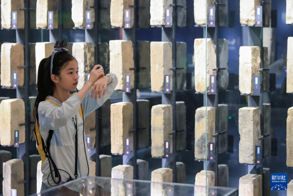 7月7日,一名小朋友在南京城墙博物馆参观。暑假期间,孩子们参加丰富多彩的活动,乐享假日时光。新华社发(苏阳摄)