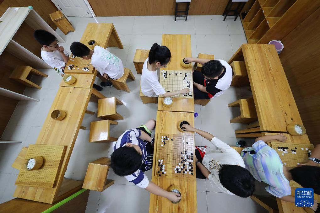 7月7日,在河南省商丘市睢阳区一家围棋培训机构,孩子们在下围棋。暑假期间,孩子们参加丰富多彩的活动,乐享假日时光。新华社发(李恒摄)