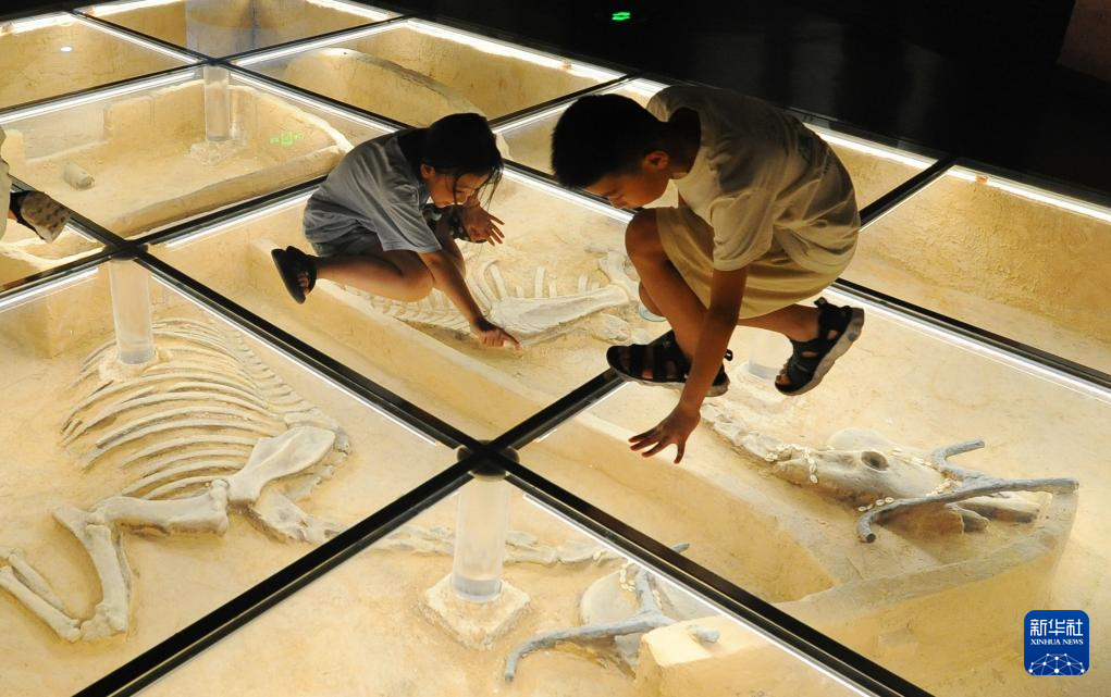 7月6日,孩子们在山东省滕州博物馆内参观。暑假期间,孩子们参加丰富多彩的活动,乐享假日时光。新华社发(李志军摄)