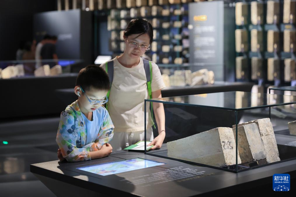 7月7日,家长陪伴孩子在南京城墙博物馆参观。暑假期间,孩子们参加丰富多彩的活动,乐享假日时光。新华社发(苏阳摄)