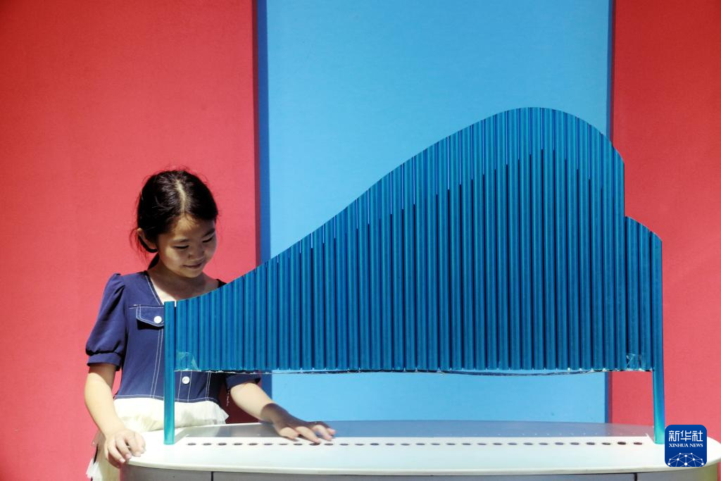 7月7日,在山东潍坊高密市科技馆,一名小朋友在体验音乐科普设备。暑假期间,孩子们参加丰富多彩的活动,乐享假日时光。新华社发(李海涛摄)