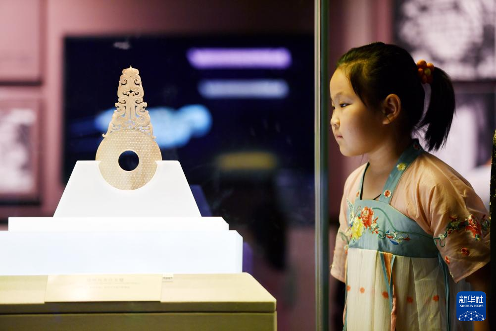 7月6日,一名孩子在河北博物院参观。暑假期间,孩子们参加丰富多彩的活动,乐享假日时光。新华社发(张晓峰摄)