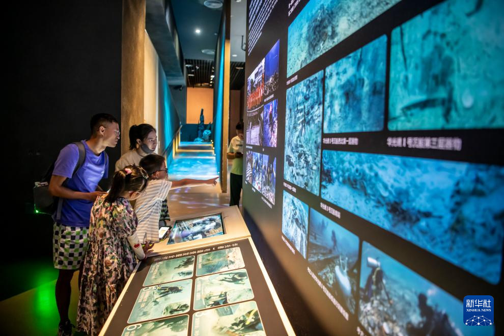 7月6日,家长和学生在中国(海南)南海博物馆参观。暑假期间,孩子们参加丰富多彩的活动,乐享假日时光。新华社发(蒙钟德摄)