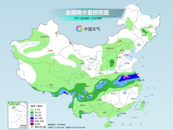 今起强降雨带东段南压江苏湖北等地有大暴雨