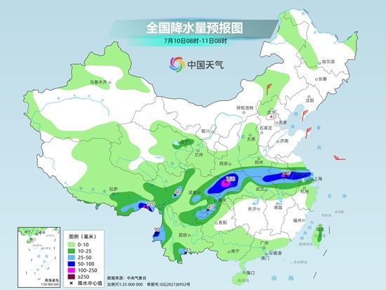 今天开始至13日,四川盆地的强降雨还将维持,但强降雨带东段将会发生变化,强降雨落区将向南转移至江汉、江淮、黄淮南部等地。