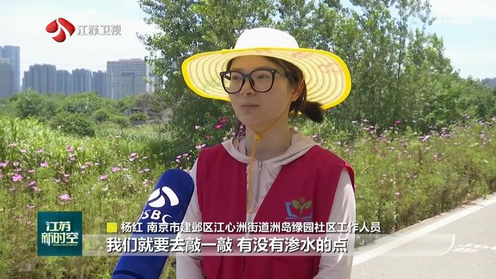 南京市建邺区江心洲街道洲岛绿园社区工作人员杨红告诉记者,巡查的过程中如果发现某一块土地突然间湿润了,就要去敲一敲,看看有没有渗水点,及时标记,及时上报。