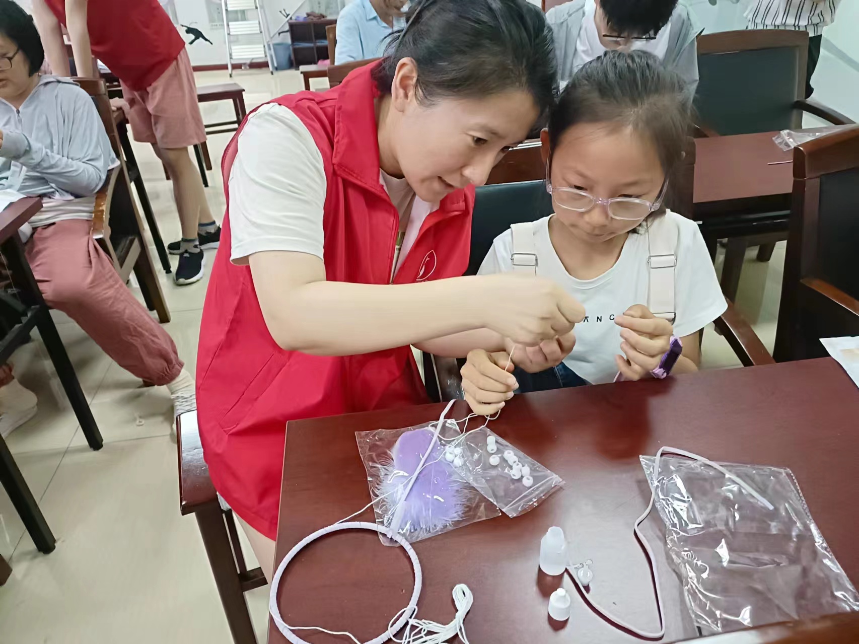 现场,志愿者老师带领大家一起编织了捕梦网风铃,让孩子们通过编织的方式去感受自己内心的平静,并将这些情感转化为作品的一部分。