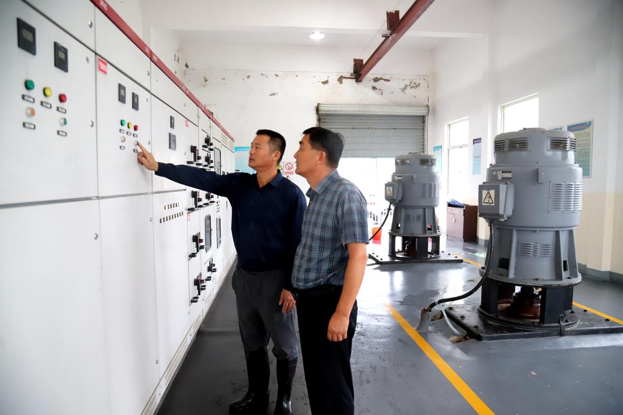 当天在东风圩排涝站,一名工作人员告诉记者,东风圩排涝站共有每秒8.1个流量的排涝水泵5台,肩负着桠溪和东圩两个行政村1万多亩农田的排涝工作。该工作人员说道:“防汛期间我们每天24小时值班值守,并随时关注外河和内河水情做好排涝。像今天这样的雨情,目前根据内河水情,我们开启了3台每秒共4.7个流量的排涝水泵。接下来,根据雨情我们将随时开启另外2台水泵,增加排涝流量,进一步保证内河水位稳定,村民农田不受影响。”