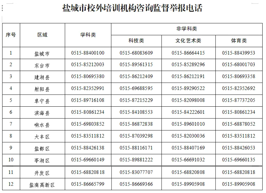 交汇点讯 暑期已至,为深入贯彻“双减”工作部署,进一步巩固校外培训治理成果,加强学科类隐形变异违规培训查处力度,提升非学科类校外培训监管质态,防范各类安全风险隐患,减轻学生暑期校外培训负担,目前,镇江、扬州、盐城、无锡等多地已经启动了暑期校外培训专项治理工作。同时,各地也发布了监督举报电话。
