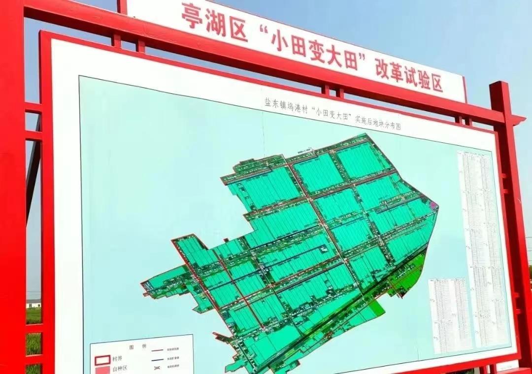 2019年,盐城亭湖区以入选江苏第三轮省农村改革试验区为契机,探索将“一户多块田”变为“靠家、靠路、靠河”的整块田,在全国率先启动“小田变大田”改革试点。