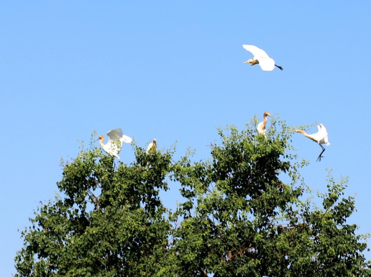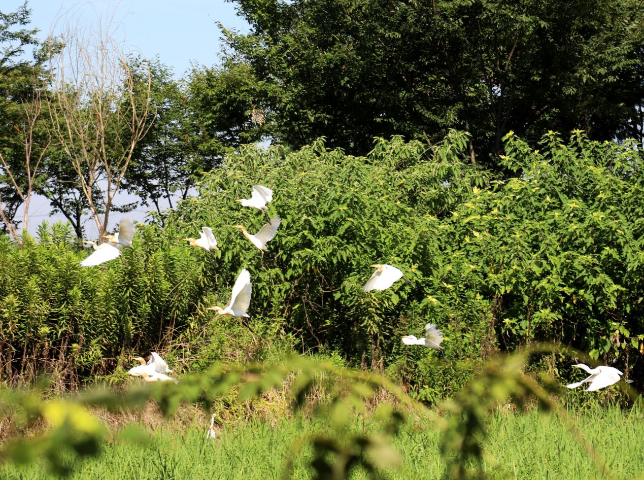 据悉,近年来,随着当地生态环境不断改善,良好的生态条件吸引了大批鹭鸟前来栖息,在该街道经常都会看到鹭鸟栖息山林或稻田的美丽场景。