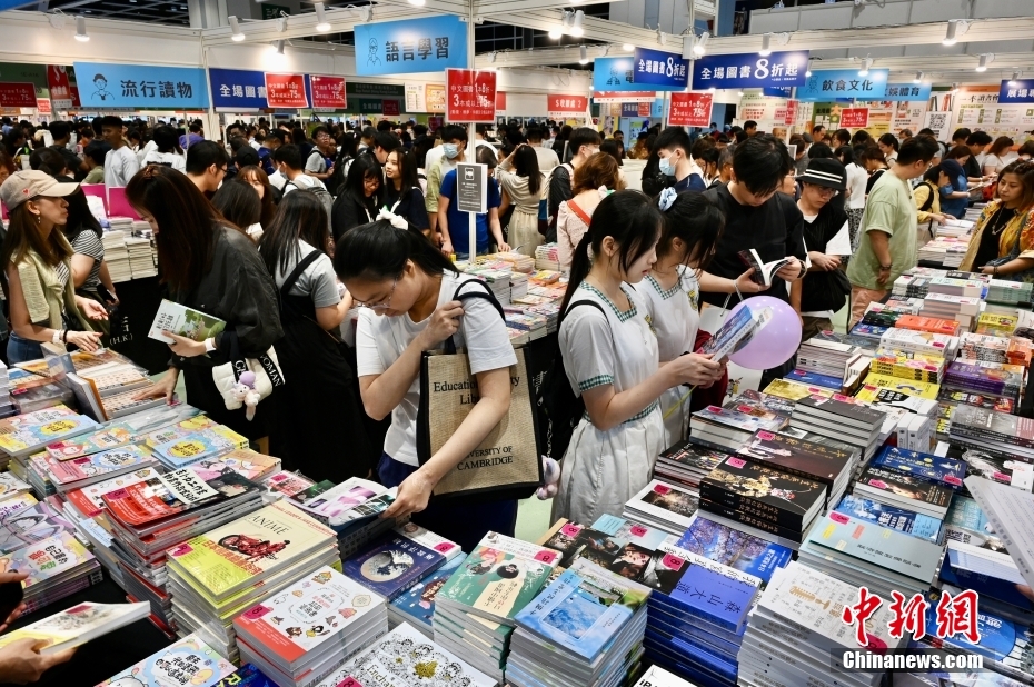 第三十四届香港书展将于7月23日闭幕。22日下午,大批市民及旅客到访书展阅读或买书,现场书香四溢,有书商提前减价促销,吸引顾客买书。图为大批市民及旅客逛书展。